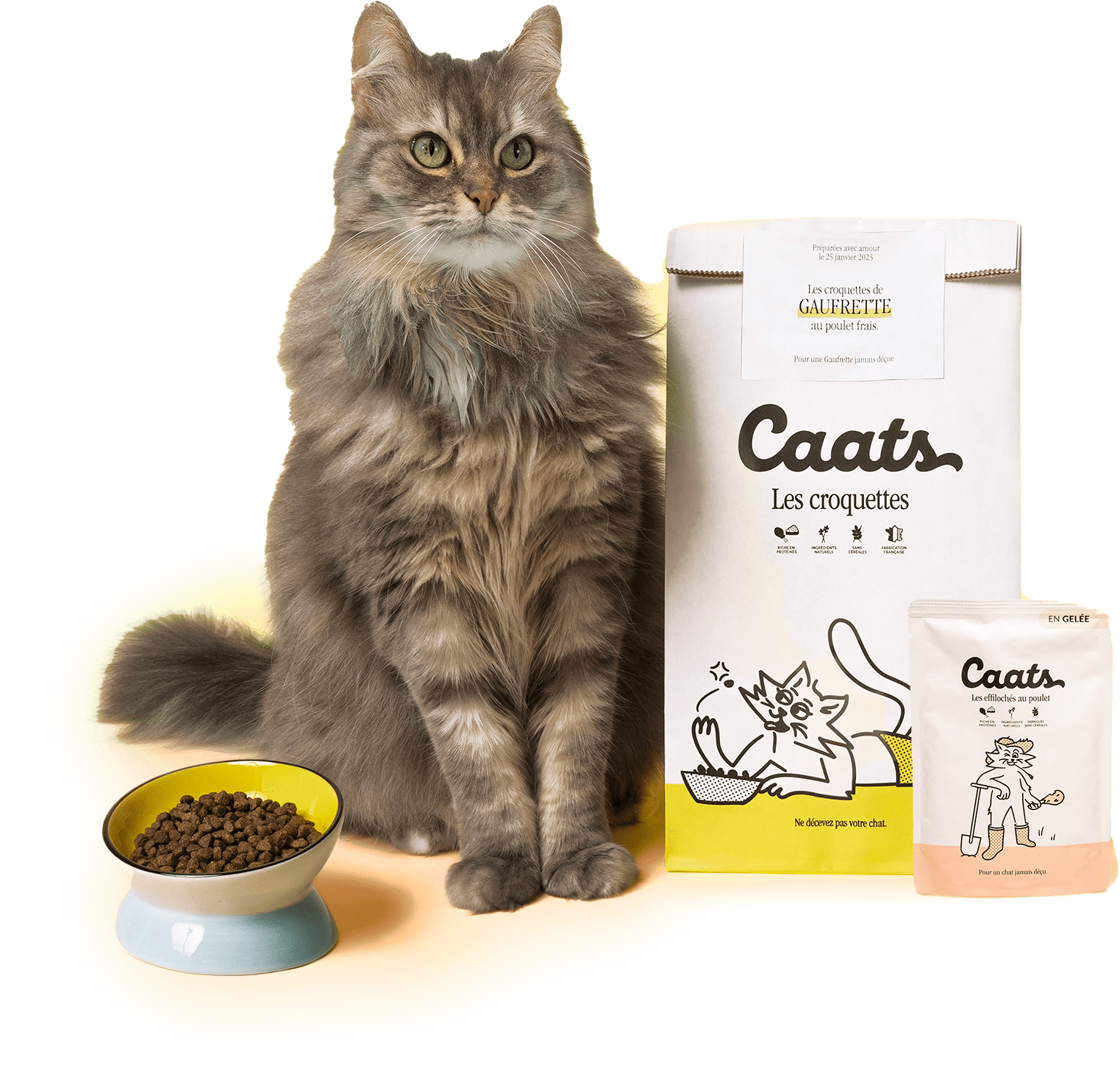 Avec Caats, nous avons créé une solution d’alimentation pratique et efficace pour prendre soin de la santé de vos chats.