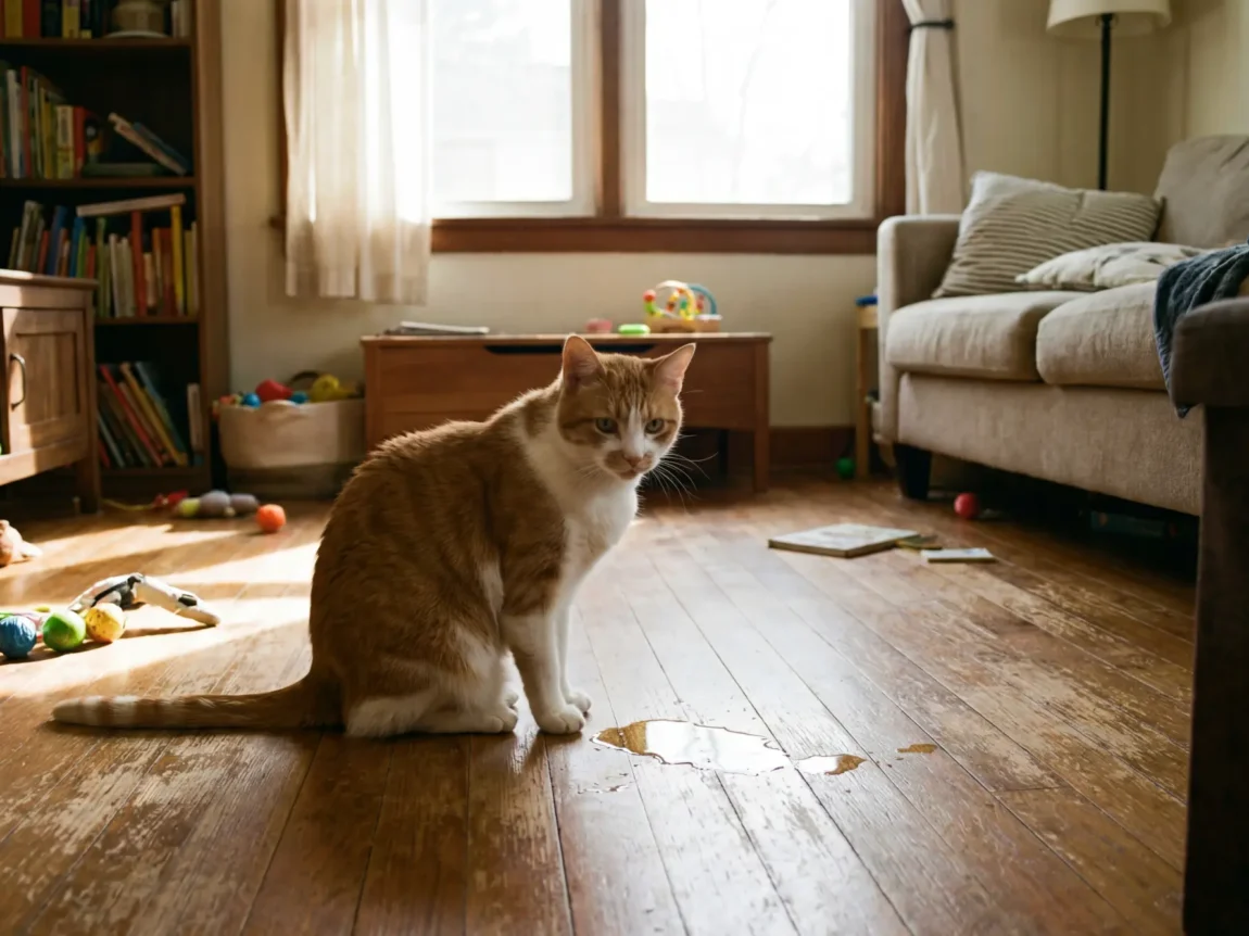 cystite chat: un chat fait pipi sur le sol