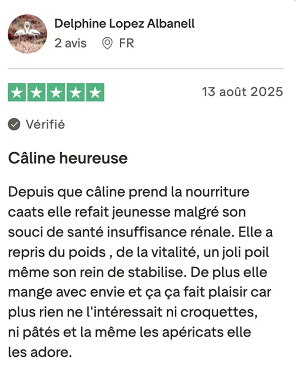 Mais grâce à la haute digestibilité de nos recettes, la majorité des chats s’adaptent très vite, souvent dès les premiers jours.